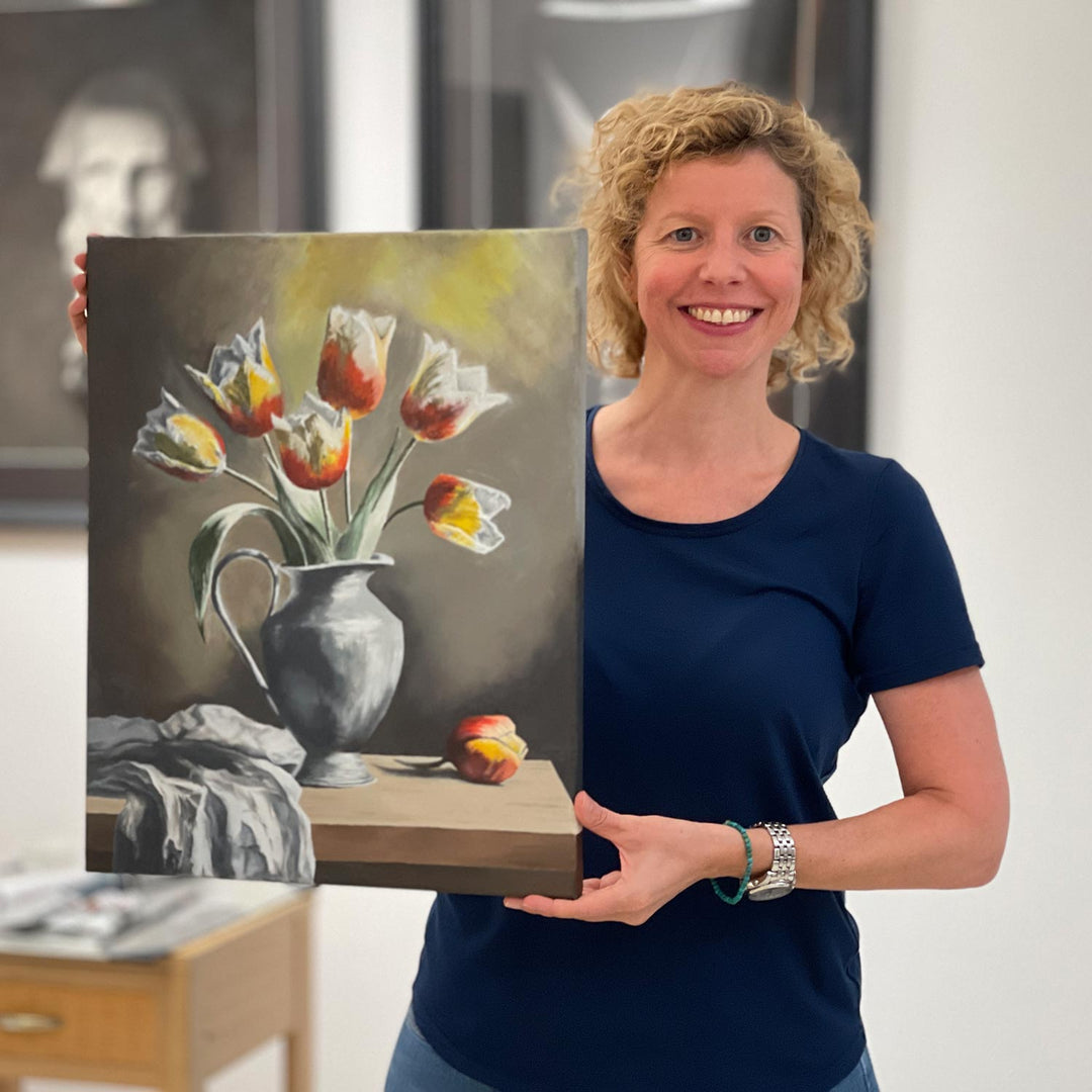 "Mit der IQPAINTER-Mischpalette konnte ich meine erste Ölmalerei zu diesem tollen Ergebnis bringen. Das Inlay führte mich Schritt für Schritt zu diesem wunderschönen Stillleben. Ich hatte die Kontrolle über meine Farbmischungen, dank des Motiv-Inlays, das mir half genau die richtigen Schattierungen und Farbwerte zu erzielen. Ich werde auf jeden Fall dran bleiben und meine Fertigkeiten mit weiteren Inlays vertiefen."